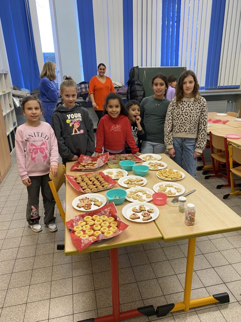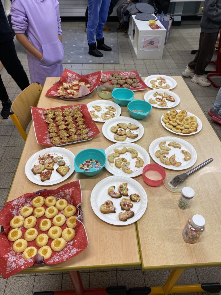 Anfang Dezember durften 6 Kinder mit einem Elternteil am Nachmittag in der Schule leckere Plätzchen backen.